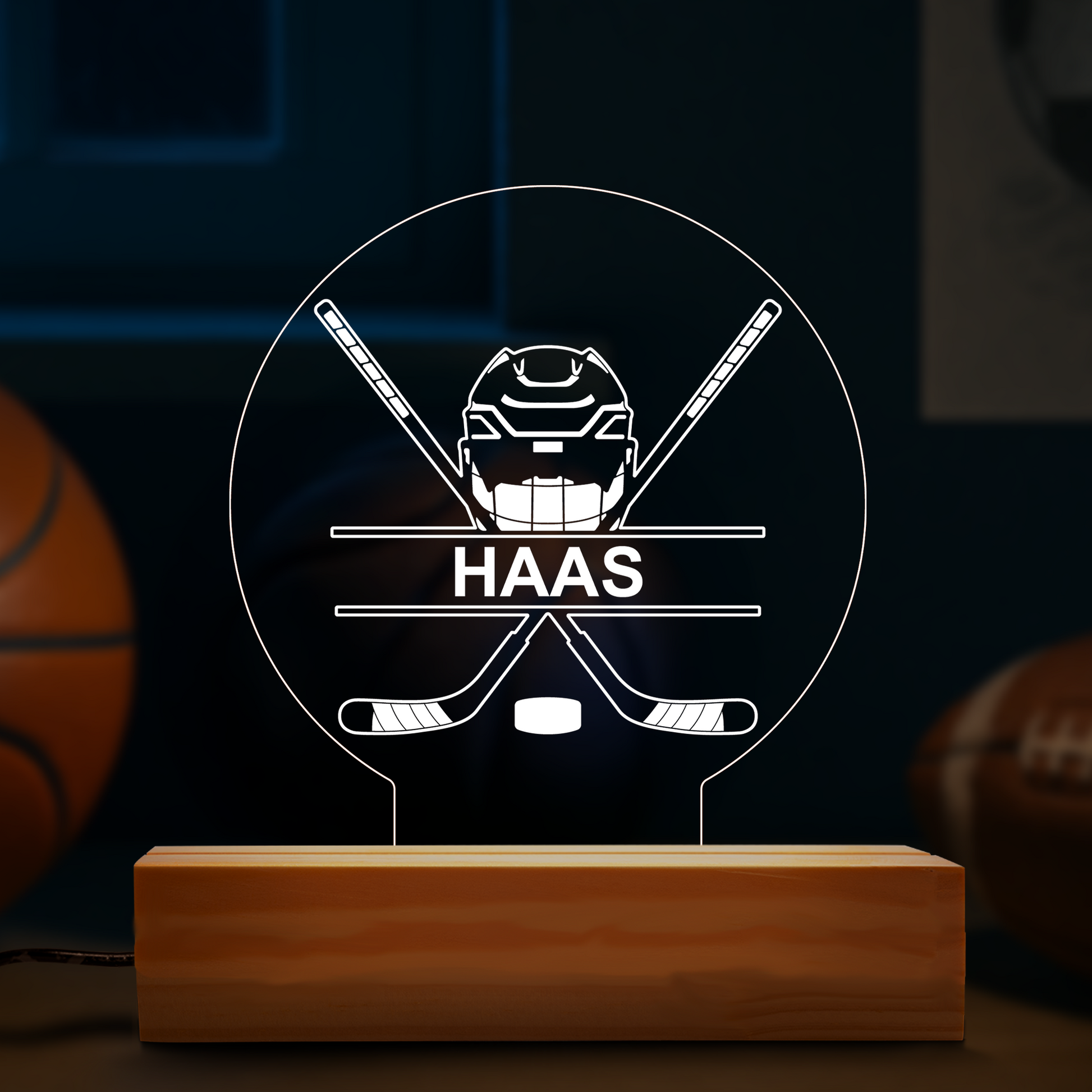 Hockey Nightlight – Personalized LED Acrylic Lamp for Kids, Hockey Fans & Sports-Themed Rooms
