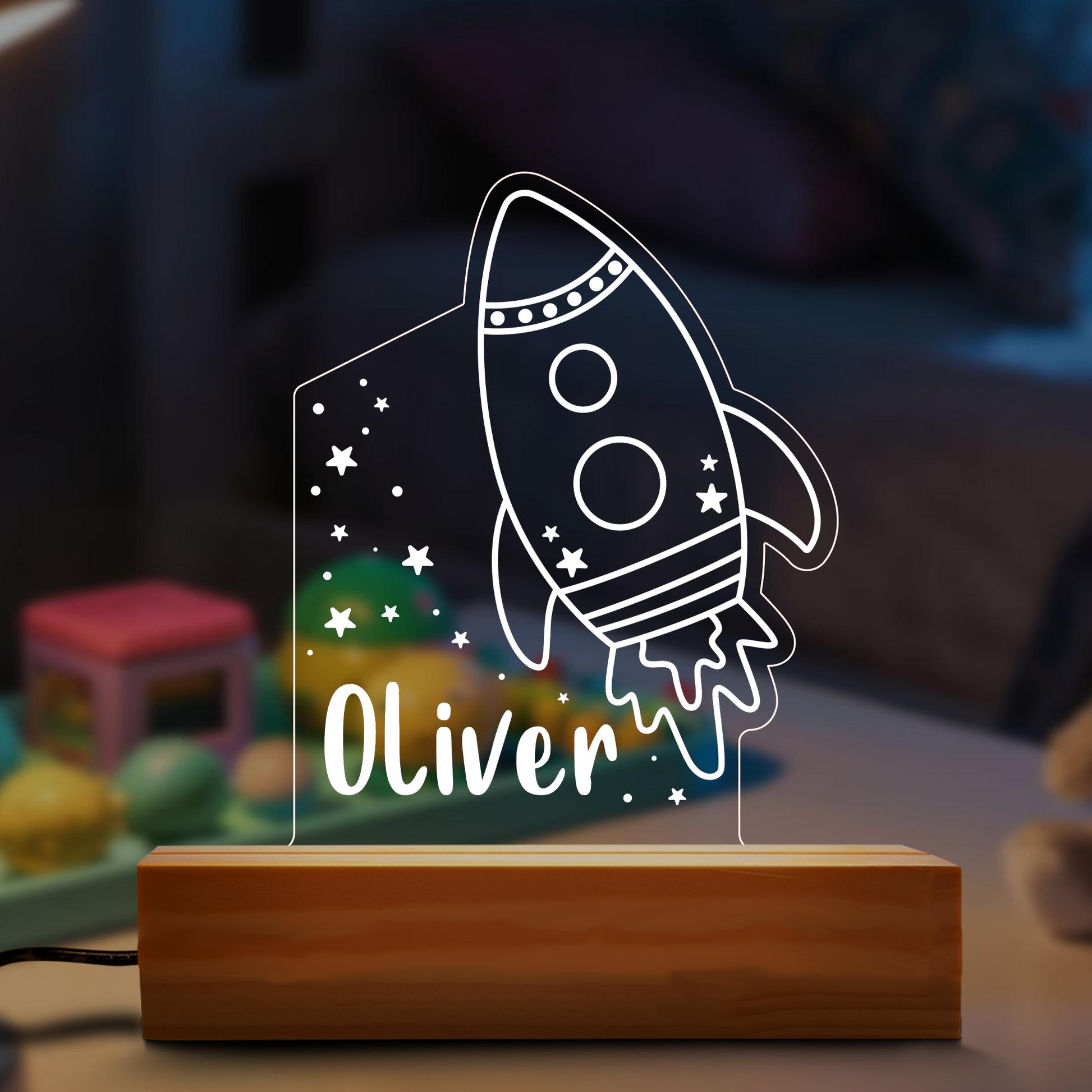 Rocket Nightlight – Personalized LED Acrylic Lamp for Kids, Space Lovers & Outer Space-Themed Bedrooms